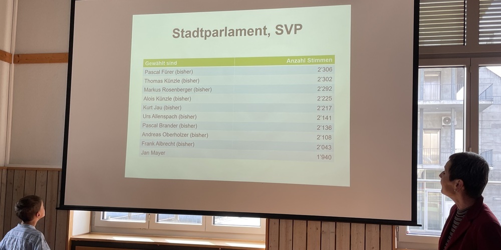 Zum Ergebnis der SVP sind sich Stadträtin Claudia Martin und Fraktionspräsident Kurt Jau einig: "Es hätte nicht besser laufen können." Der Jubel der SVP-Fraktion sowie den weiteren anwesenden Mitgliedern beim Wahlapéro nach der Bekanntgabe der Ergebnisse durch Stadträtin Helen Alder-Frey ist gross. "Wir waren präsent und haben hart gekämpft - es hat sich ausgezahlt", so Jau.