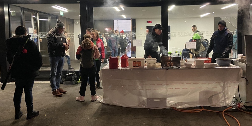 Grilladen und Pommes wurden im Aussenbereich angeboten.