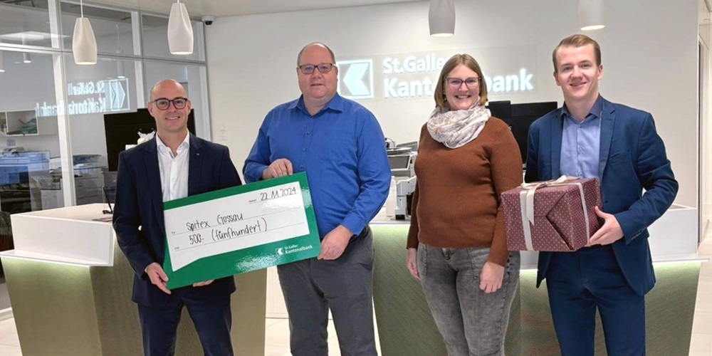 Die Niederlassung Gossau der St.Galler Kantonalbank unterstützt in diesem Jahr die Spitex Gossau mit einem Spendenbeitrag von 500 Franken.