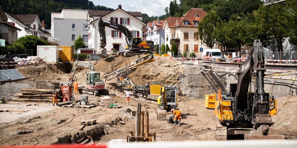 Die Neugestaltung des Marktplatzes mit Kulturhaus, Markthalle und Tiefgarage kommt gut voran. Der aktuelle Stand der Arbeiten entspricht dem Zeitplan. Nach wie vor läuft der Aushub der Baugrube für die Tiefgarage. Dieser dauert noch bis im August, ehe das Fundament ausgegossen wird und die Tiefgarage weiter Form annehmen soll. In den kommenden Monaten sind eine feierliche Grundsteinlegung sowie eine öffentliche Baustellenbegehung vorgesehen. Alle Informationen dazu werden zu gegebener Zeit im FLADE-Blatt publiziert.