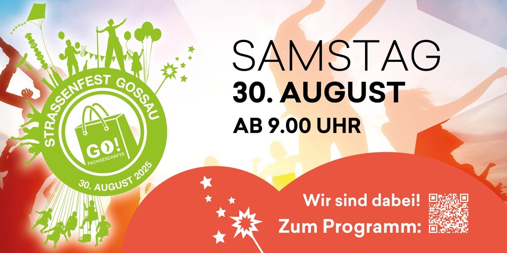 Am Samstag, 30. August, findet ab 9:00 Uhr in der verkehrsfreien Innenstadt von Gossau das 10. Strassenfest statt. Das von der Vereinigung der Fachgeschäfte Gossau organisierte Fest mit über 55 Marktständen bietet ein vielfältiges Programm mit kulinarischen Angeboten, Spiel, Sport, Vorführungen und wird durch einen Jubiläumswettbewerb ergänzt.