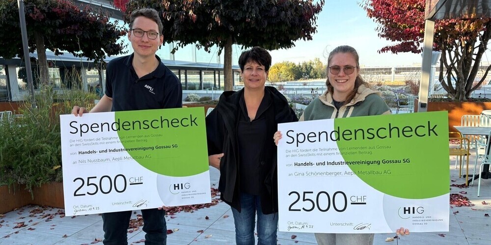 Die Handels- und Industrievereinigung Gossau (HIG) gratuliert den beiden Lernenden der Aepli AG herzlich zu ihrem grossartigen Erfolg an den SwissSkills 2025: