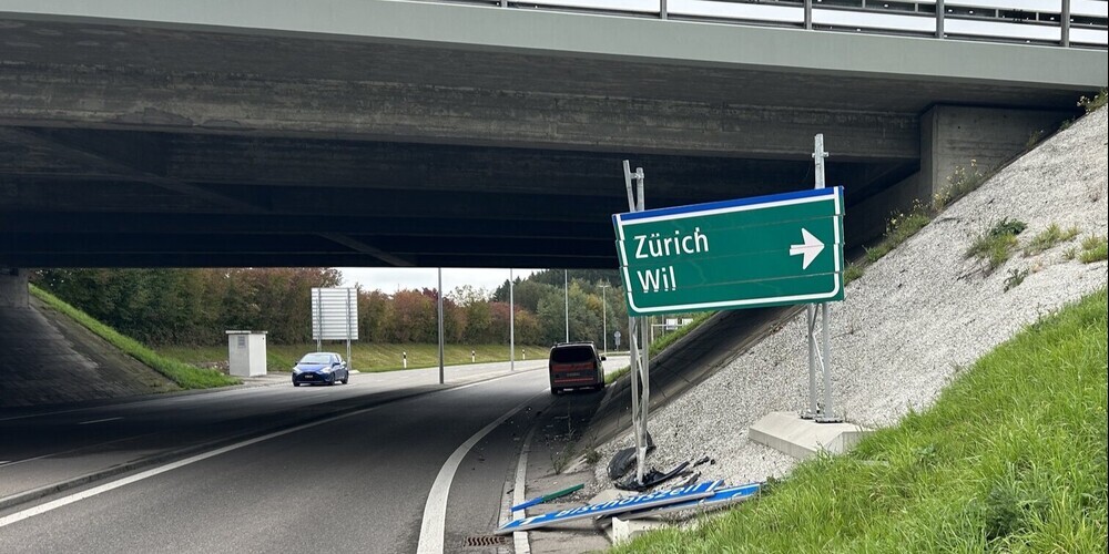 Kurz nach 12:30 Uhr meldete sich eine Auskunftsperson bei der Notruf- und Einsatzleitzentrale St.Gallen und meldete, dass unter der Autobahnbrücke diverse Teile der Verkehrssignalisation liegen. Die ausgerückte Patrouille stellte fest, dass an dieser Örtlichkeit offensichtlich durch eine zunächst unbekannte Person ein Selbstunfall mit einem Fahrzeug verursacht worden war. Diese hatte in Fahrtrichtung Arnegg einen Randleitpfosten sowie eine Verkehrstafel touchiert und die Unfallstelle danach verlassen, ohne sich um den Schaden zu kümmern. Rund eine Stunde später meldete sich eine 25-jährige Frau bei der Polizei und gab an, dass sie die Verursacherin des Unfalls gewesen sei. Bei der anschliessenden Kontrolle ergab die beweissichere Atemalkoholprobe einen Wert von 0.38mg/l. Die Frau wurde mit einem mehrstündigen Fahrverbot belegt.